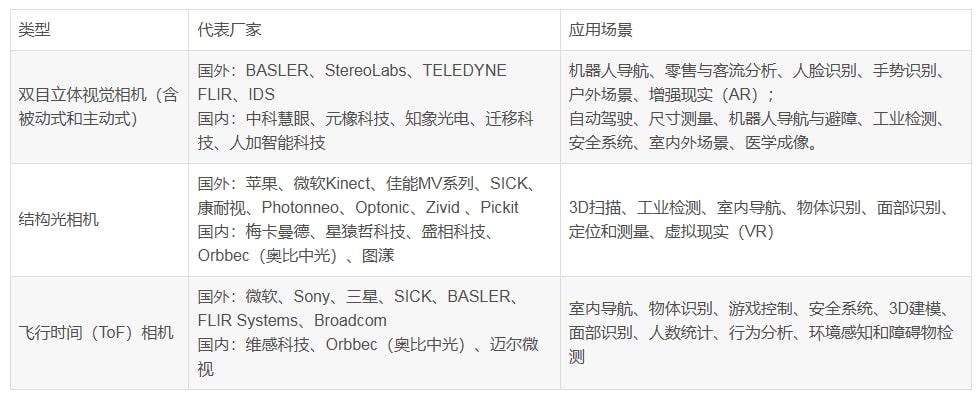 首页 动态 目前主流3D视觉技术各有什么优劣势?如何选择最Match的工业3D相机? 目前主流3D视觉技术各有什么优劣势?如何选择最Match的工业3D相机? 技术科普 2024-08-12 浏览量:1984 什么3D相机?3D相机与2D相机相比有什么差别? 3D相机,也被称作深度相机,与传统的2D相机相比,它能够多获取物体到相机的距离信息,即深度信息,结合2D图像的X和Y坐标,可以计算出每个点的三维坐标,从而实现三维重建、目标定位、导航避障等功能。 3D机器视觉可以完成许多2D机器视觉无法完成的任务。 以零件检测为例,下图零件表面有一划痕、边沿有凹陷。传统的2D机器视觉只能依靠表面图像颜色的不连续来判断是否缺陷,但此案例中,缺陷和零件表面反光颜色接近,判断难度很大,3D相机可以得到表面凹凸的深度信息,从而准确的判定划痕和边缘的凹陷。 此外,目前3D视觉技术在高精度检测、高精度测量(例如弯管、不规则件)、智能分栋、装配(引导机械臂在三维空间内避障和定位)、物流车导航等更多场景中实现了相较于2D机器视觉更为广泛的应用覆盖。 主流3D技术对比 3D相机的工作原理主要有三种技术:双目立体视觉、结构光和ToF(Time of Flight),还有其他市面上常见和新技术发展起来的相机种类。 1. 双目立体视觉基于视差原理并利用成像设备 从不同的位置获取被测物体的两幅图像,通过计算图像对应点间的位置偏差来获取物体三维几何信息。 一般立体视觉相机指的是被动式双目立体视觉相机,而主动式双目立体视觉相机是在双目立体视觉的基础上,增加了主动发射光源(通常是红外光)来辅助获取深度信息的相机系统,这种系统结合了被动双目视觉和主动发射光源的优势。 1. 被动式双目立体视觉相机 【优点】1)硬件要求低,功耗低,成本低。普通 CMOS 相机即可; 2)室内外都适用,尤其适合在户外工作; 3)适用于纹理丰富的场景。 【缺点】1)对环境光照非常敏感。光线变化导致图像偏差大,进而会导致匹配失败或精度低; 2)不适用单调缺乏纹理的场景。双目视觉根据视觉特征进行图像匹配,没有特征会导致匹配失败; 3)计算复杂度高。该方法是纯视觉的方法,对算法要求高,计算量较大; 4)基线限制了测量范围。测量范围和基线(两个摄像头间距)成正比,导致无法小型化。 2. 主动式双目立体视觉相机 通常是指在双目立体视觉的基础上,增加了主动发射光源(如红外光)来辅助获取深度信息的相机系统。这种系统结合了被动双目视觉和主动发射光源的优势。国内304am永利智能是研究该领域的专业企业。 【优点】1)低光场景可用:可在户外使用,同时也可在低光或无光环境工作,提高图像可见度和深度测量准确性; 2)增强纹理信息:为缺乏纹理的表面增加必要纹理信息,适合表面光滑和颜色单一场景; 3)降低环境光干扰:使用红外或特定波长的光源可以减少环境光变化对系统性能的影响。 【缺点】1)功耗增加:使用外部光源可能会增加系统的功耗,尤其是在需要长时间运行的应用中。 2)安装和校准:需要更精确的安装和校准过程,以确保光源和相机之间的正确对齐。 结构光 通过近红外激光器,将具有一定结构特征的光线投射到被拍摄物体上,再由专门的红外摄像头进行采集。这种具备一定结构的光线,会因被摄物体的不同深度区域,而采集不同的图像相位信息,然后通过运算单元将这种结构的变化换算成深度信息,以此来获得三维结构。 根据编码图案不同一般有:条纹结构光、编码结构光、散斑结构光。 【优点】1)方案成熟,相机基线可以做的比较小,方便小型化。 2)资源消耗较低,单帧 IR 图就可计算出深度图,功耗低。 3)主动光源,夜晚也可使用。 4)在一定范围内精度高,分辨率高,分辨率可达 1280x1024,帧率可达 60FPS。 【缺点】1)容易受环境光干扰,室外体验差。 2)随检测距离增加,精度会变差。 TOF 顾名思义是测量光飞行时间来取得距离,具体而言就是通过给目标连续发射激光脉冲,然后用传感器 接收从反射光线,通过探测光脉冲的飞行往返时间来得到确切的目标物距离。 因为光速激光,通过直接测光飞行时间实际不可行,一般通过检测通过一定手段调制后的光波的相位偏移来实现。 TOF 法根据调制方法的不同,一般可以分为两种:脉冲调制(Pulsed Modulation)和连续波调制 (Continuous Wave Modulation)。 脉冲调制需要非常高精度时钟进行测量,且需要发出高频高强度激光,目前大多采用检测相位偏移办法来实现 TOF 功能。简单来说就是,发出一道经过处理的光,碰到物体以后会反射回来,通过捕捉来回的时间计算距离。 【优点】 1)检测距离远:在激光能量够的情况下可达几十米。 2) 受环境光干扰较小。 【缺点】 1)对设备要求高,特别是时间测量模块; 2)资源消耗大。 该方案在检测相位偏移时需要多次采样积分,运算量大。 3)边缘精度低。 4)限于资源消耗和滤波,帧率和分辨率都没办法做到较高。 三种技术性能对比 上一个:【最全选型攻略】挑选合适的工业相机,必须提前考虑12要素! 返回列表 下一个:3D机器视觉可以完成许多2D机器视觉无法完成的任务。 更多新闻推荐 端到端 更易用丨304am永利®散料运输动态监测与预警系统全新上市 新品上市 2025-02-20 小尺寸 更灵活丨304am永利3D相机PEA020-800-Y80S上新,助力多场景智造升级 新品上市 2024-09-29 【最全选型攻略】挑选合适的工业相机,必须提前考虑12要素! 工业相机 2024-07-1